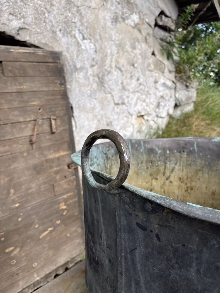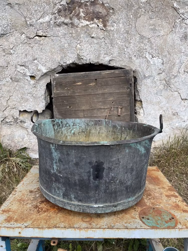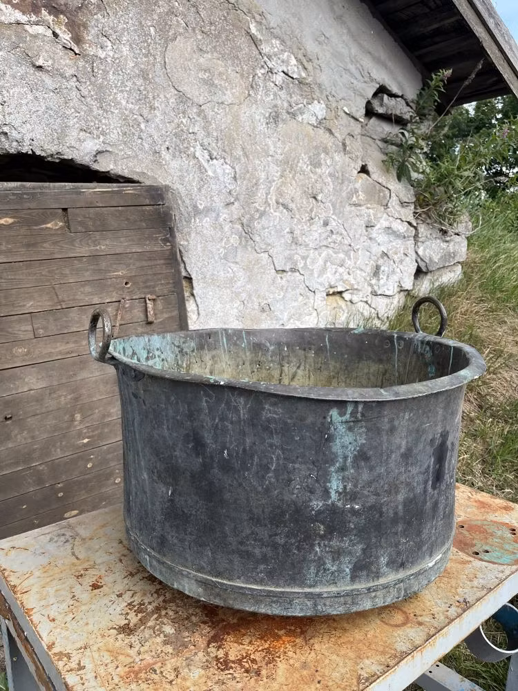 Stor kopparkittel med patina Kopparkittel med handtag. 1800/1900-tal. Mått: Höjd ca 47cm, ca 74cm i diameter. Pris 4 000 kr 2 500 kr Produkten är tyvärr slut i lager. :( Slut i lager Dela: Information Recensioner Kopparkittel med handtag. 1800/1900-tal. Mått: Höjd ca 47cm, ca 74cm i diameter.