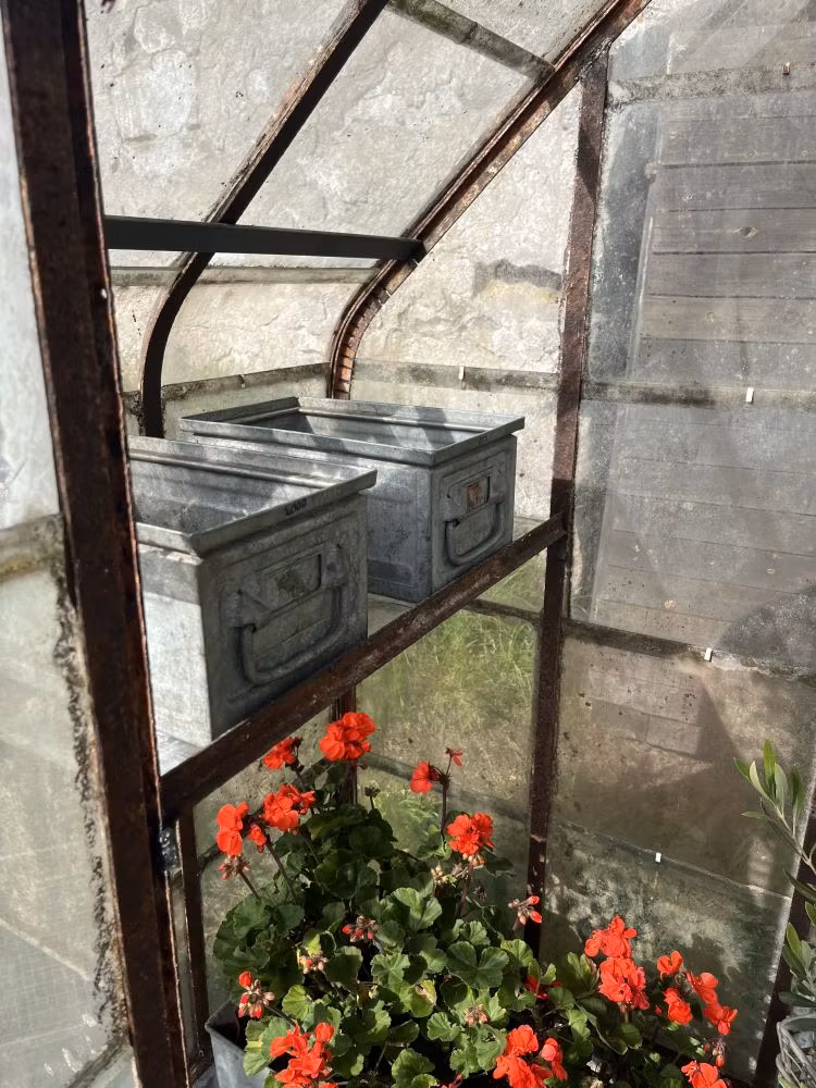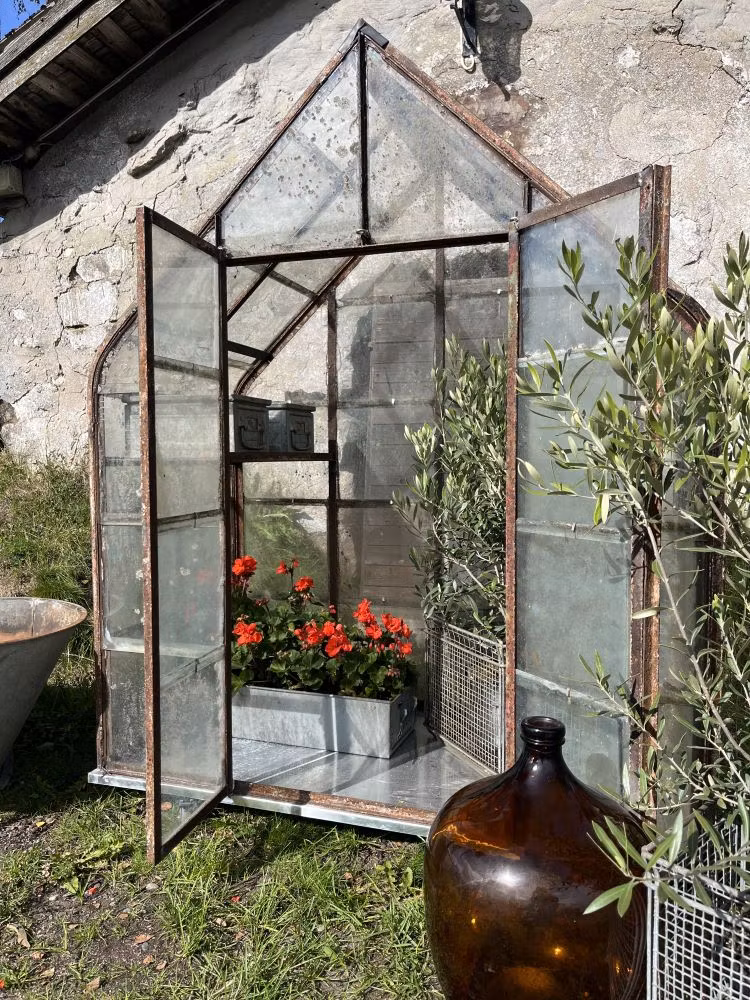 Unika handgjorda växthus av återbrukat material. Tillverkade av delar från franska växthus från 1930-talet med gammalt glas och stål.