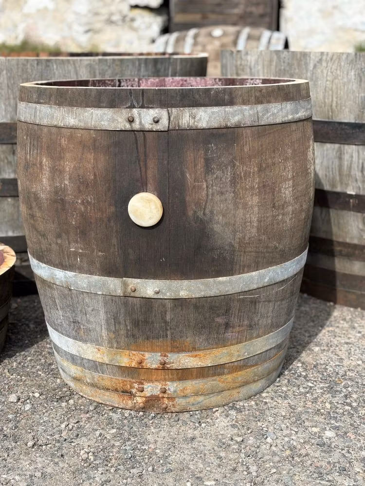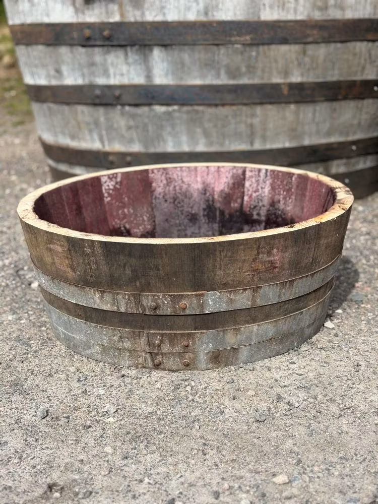 I priset ingår båda halvor av fatet. Mått ca: 3/4 - höjd 70cm x bredd 65m. 1/4 - höjd 24cm x bredd 65cm.