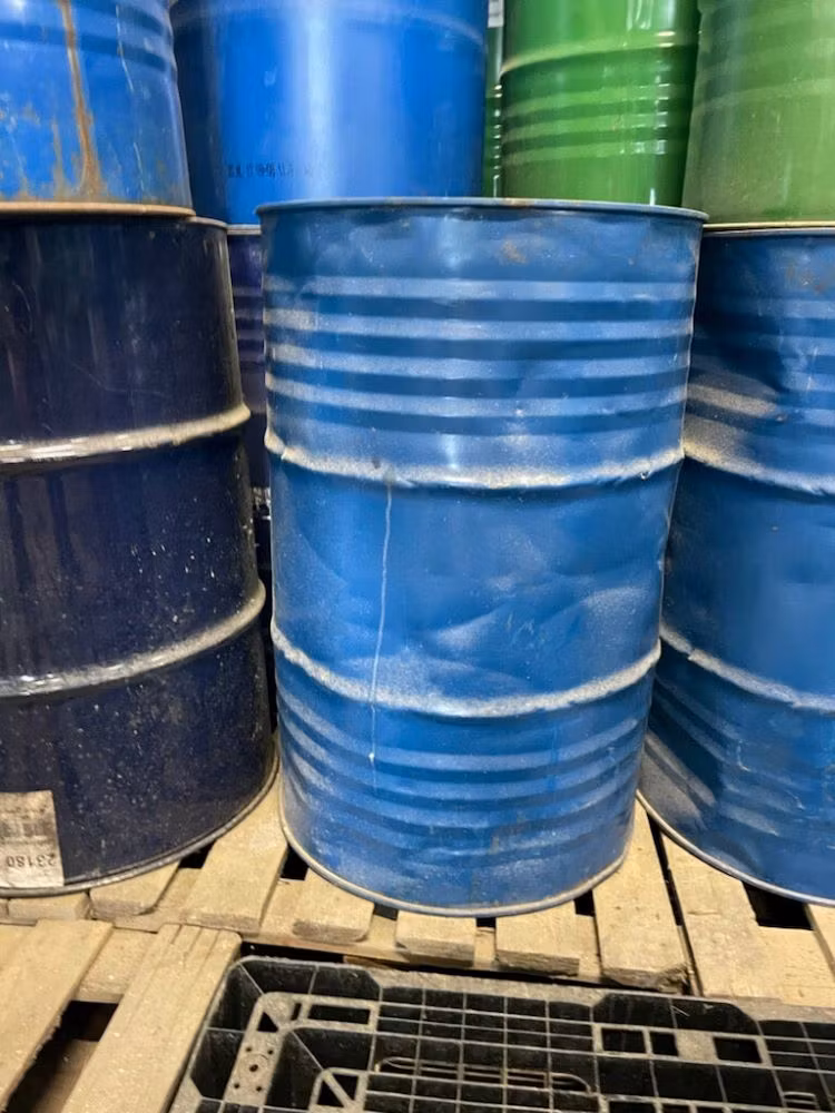 Andrasortering, kan vara buckliga. Lämpliga som eldningstunnor eller för vatten. Tidigare innehåll: livsmedel. Löst lock ingår.