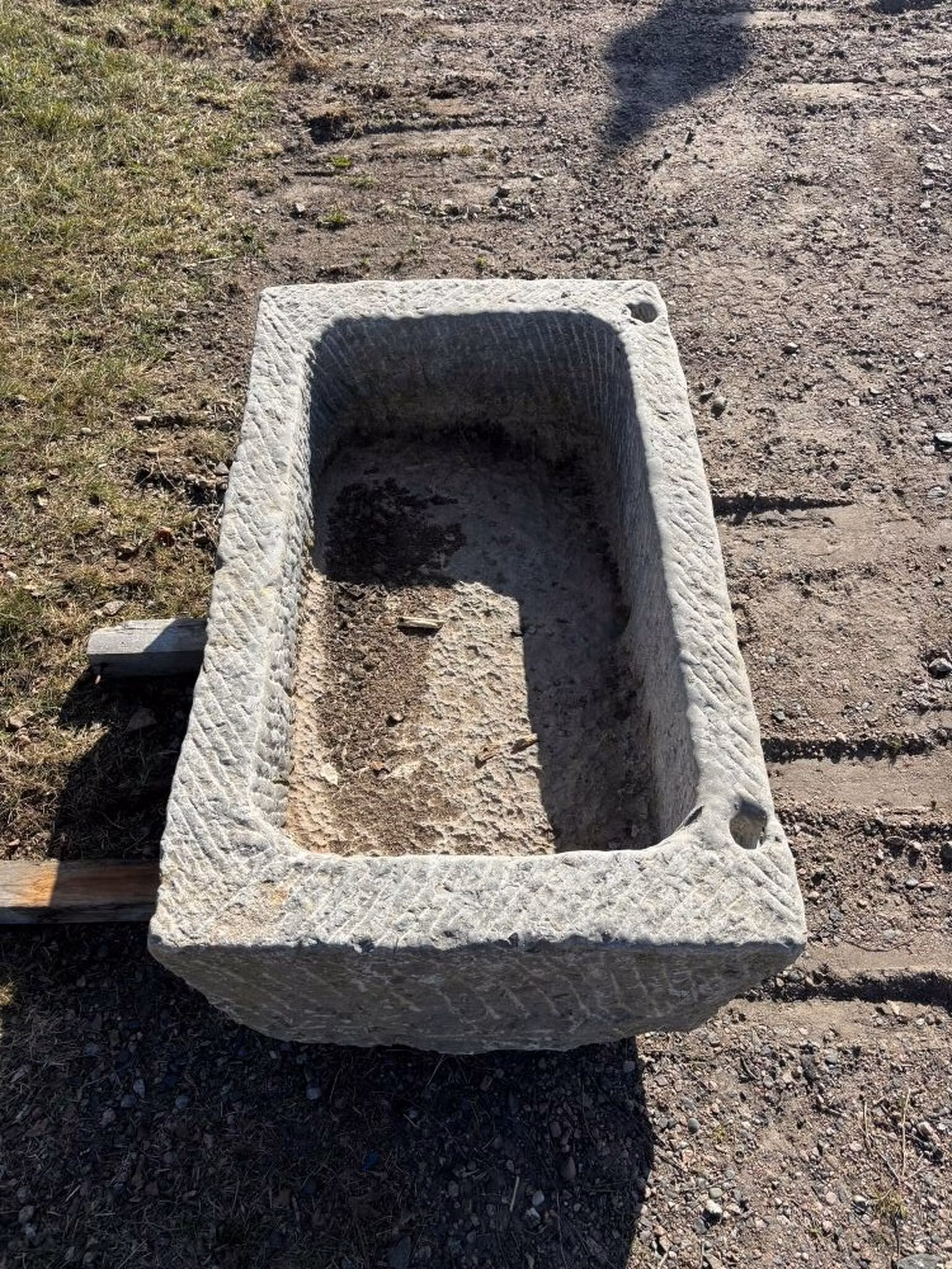 Stort kalkstenstråg 105x63cm Stort kalkstenstråg som tidigare använts som fodertråg, med dräneringshål. Mått: L 105cm, B 63cm, H 39cm. Vikt ca 180kg Pris 5 499 kr Lägg i varukorgen Dela: Information Recensioner Stort kalkstenstråg som tidigare använts som fodertråg, med dräneringshål. Mått: L 105cm, B 63cm, H 39cm. Vikt ca 180kg