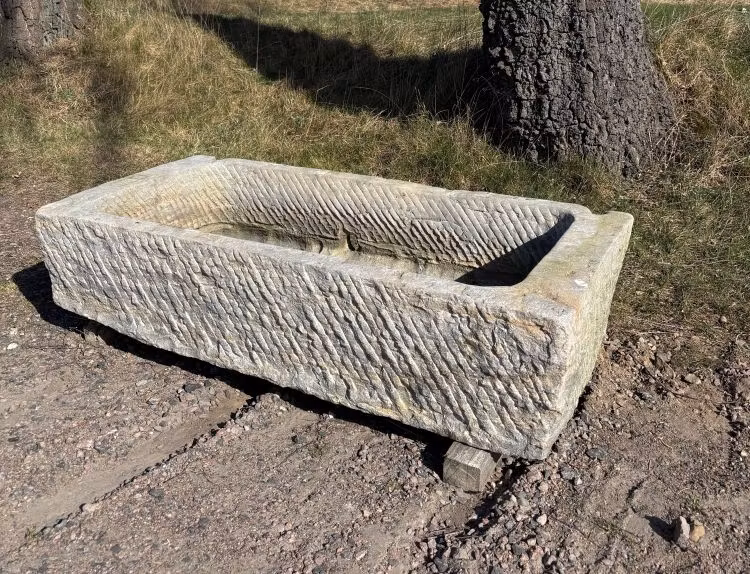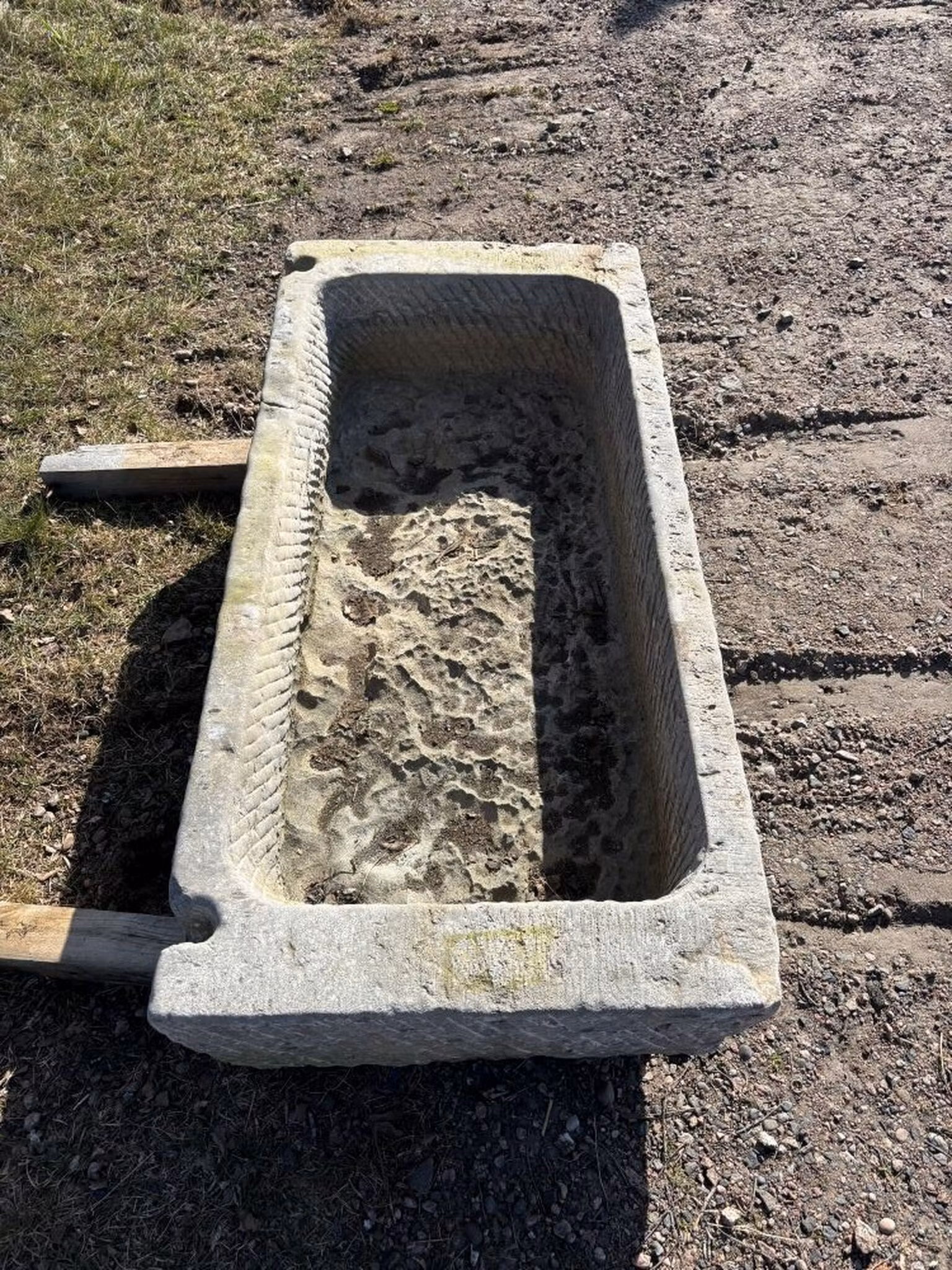 Stort kalkstenstråg 120x56cm Stort kalkstenstråg som tidigare använts som fodertråg, med dräneringshål. Mått: L 120cm, B 56cm, H 29cm. Vikt ca 200kg Pris 6 299 kr Lägg i varukorgen Dela: Information Recensioner Stort kalkstenstråg som tidigare använts som fodertråg, med dräneringshål. Mått: L 120cm, B 56cm, H 29cm. Vikt ca 200kg