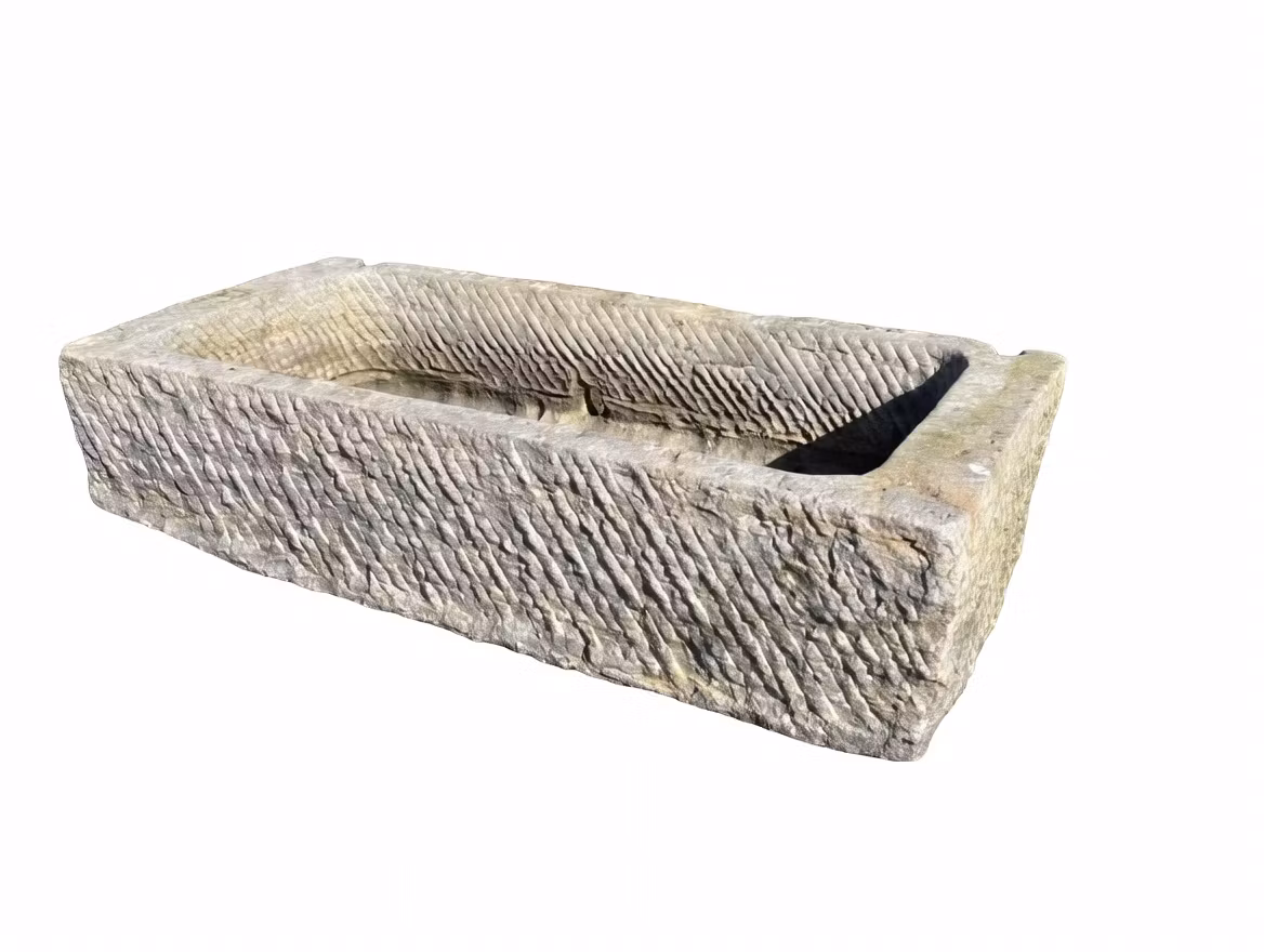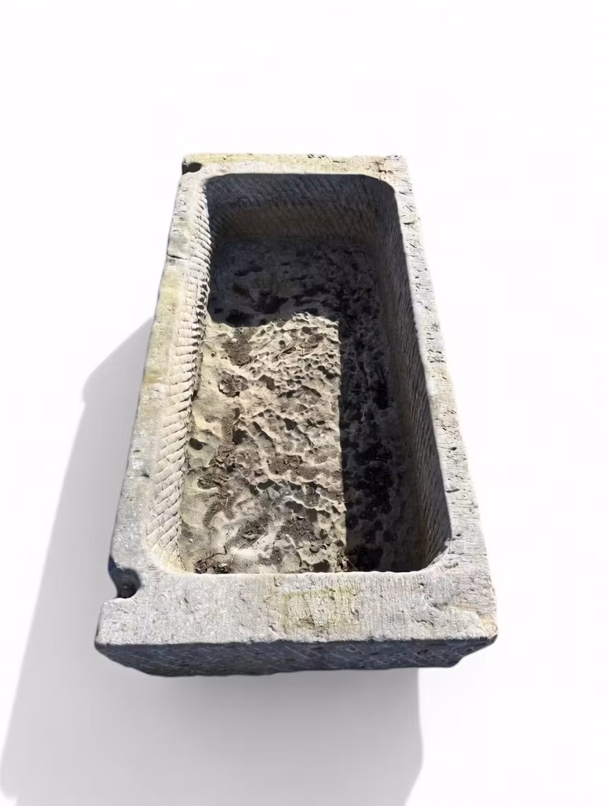 Stort kalkstenstråg 120x56cm Stort kalkstenstråg som tidigare använts som fodertråg, med dräneringshål. Mått: L 120cm, B 56cm, H 29cm. Vikt ca 200kg Pris 6 500 kr Lägg i varukorgen Dela: Information Recensioner Stort kalkstenstråg som tidigare använts som fodertråg, med dräneringshål. Mått: L 120cm, B 56cm, H 29cm. Vikt ca 200kg