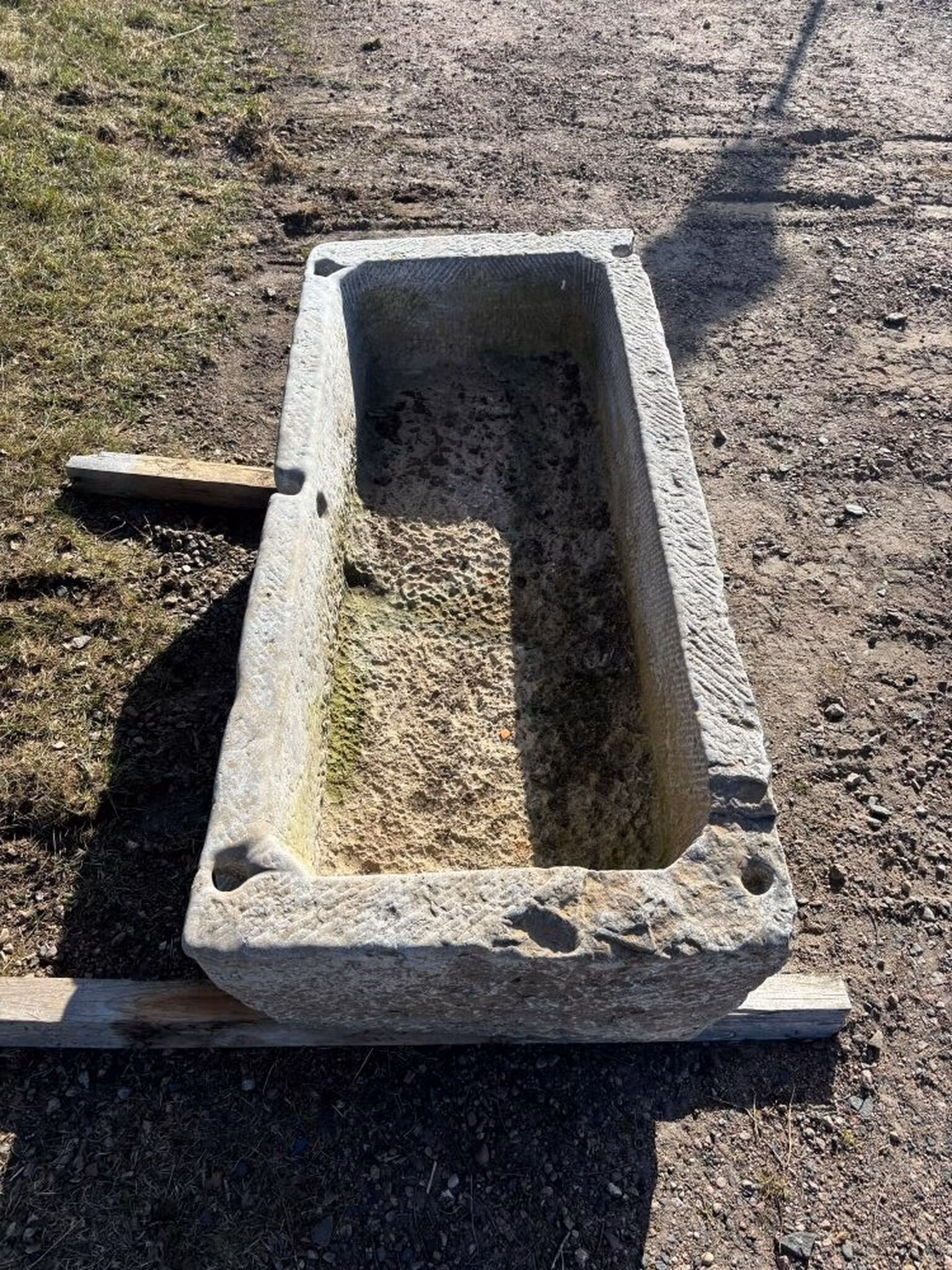 Stort kalkstenstråg 147x67cm Stort kalkstenstråg som tidigare använts som fodertråg, med dräneringshål. Mått: L 147cm, B 67cm, H 46cm. Vikt ca 180kg Pris 8 990 kr Lägg i varukorgen Dela: Information Recensioner Stort kalkstenstråg som tidigare använts som fodertråg, med dräneringshål. Mått: L 147cm, B 67cm, H 46cm. Vikt ca 180kg