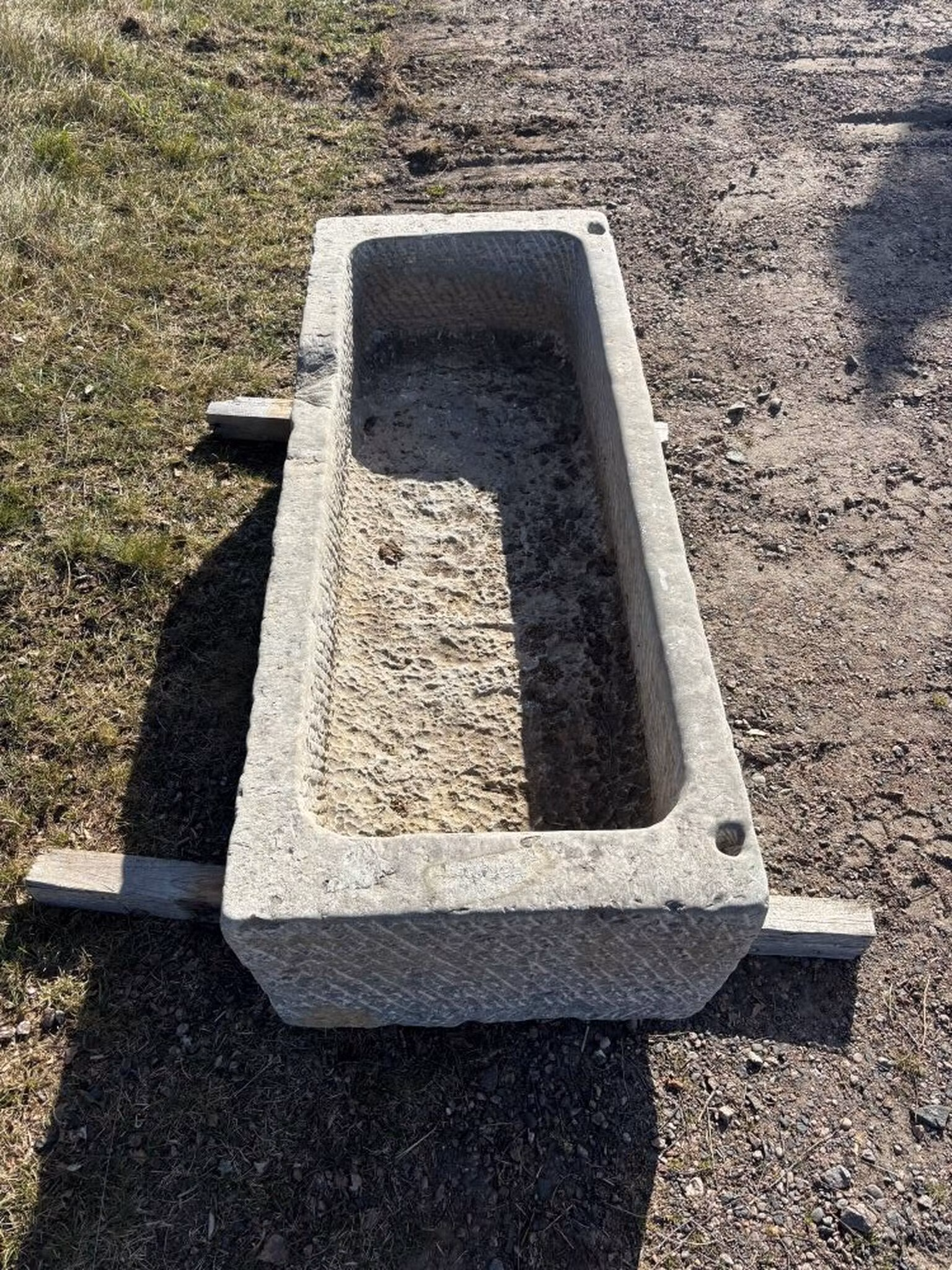 Stort kalkstenstråg 155x61cm Stort kalkstenstråg som tidigare använts som fodertråg, med dräneringshål. Mått: L 155cm, B 61cm, H 38cm. Vikt ca 220kg Pris 7 999 kr Lägg i varukorgen Dela: Information Recensioner Stort kalkstenstråg som tidigare använts som fodertråg, med dräneringshål. Mått: L 155cm, B 61cm, H 38cm. Vikt ca 220kg