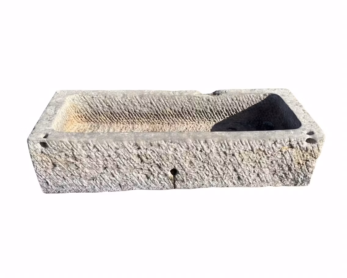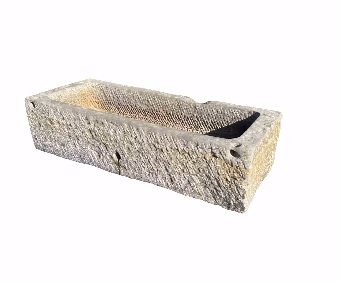 Stort kalkstenstråg 155x61cm Stort kalkstenstråg som tidigare använts som fodertråg, med dräneringshål. Mått: L 155cm, B 61cm, H 38cm. Vikt ca 220kg Pris 8 000 kr Lägg i varukorgen Dela: Information Recensioner Stort kalkstenstråg som tidigare använts som fodertråg, med dräneringshål. Mått: L 155cm, B 61cm, H 38cm. Vikt ca 220kg